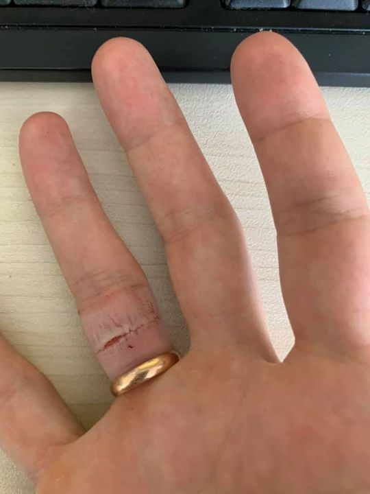 Зацепился обручальным кольцом, когда перепрыгивал через забор в детском садике в который сын ходит в бассей. Дверь должен был открыть сторож, но он куда-то отошел, а мы опаздывали. Посмотрел интернет. Могло быть хуже. В интернете какой-то фильм ужасов по запросам «зацепился», «обручальным», «кольцом». Хорошо, что отделался небольшим порезом и небольшим испугом. Старость не радость. В тридцать семь перепрыгивать через заборы сложнее. Иногда лучше наверное опоздать. А то как успеешь.
